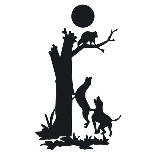 Our coon hunting designs range in size from 6’’ x 4’’ to 10’’ x 10’’ (custom sizes are also available - contact us for more information) and are available in black, white, and chrome. Included in the Coon Hunting Decals collection are detailed scenes of a dog treeing a raccoon. Coon hunters might also be interested in 2nd Amendment rights decals, camo gun skins, shotgun barrel decals, and custom designs.