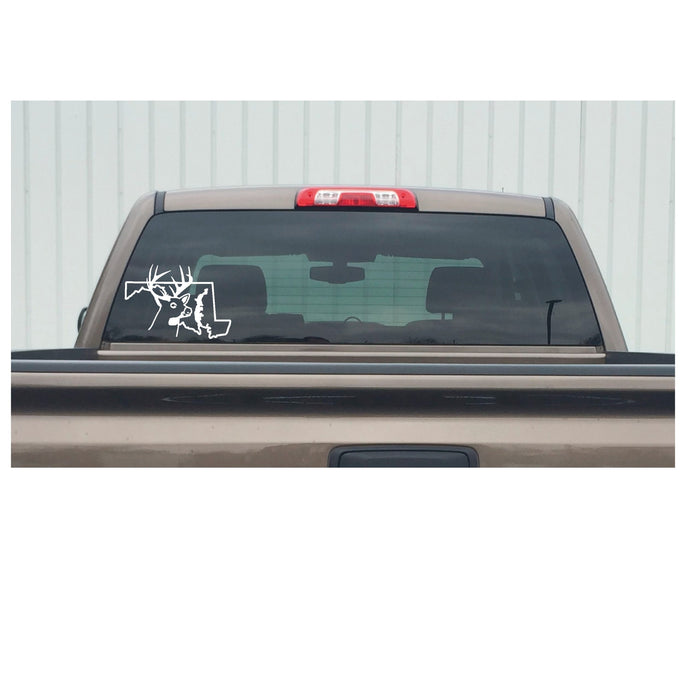 Represent your love for Maryland deer hunting with this premium-quality vinyl decal featuring the Maryland state outline and a proud deer silhouette. Ideal for hunters and outdoor enthusiasts, this versatile sticker serves as a deer hunting decal, hunting decal for trucks, or Maryland hunting sticker. Whether you're outfitting your vehicle with deer hunting window decals or decorating your gear with custom hunting decals, this design embodies the spirit of the outdoors and the excitement of the hunt.