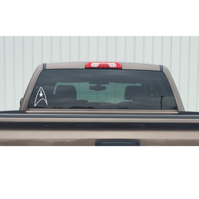 Star Trek Federation Logo on Window Decal - Star Trek Federation Logo Window Sticker is Custom Die Cut on our High Speed Vinyl cutters from outdoor grade high performance adhesive vinyl. Available in Several color and size options. Our Star Trek Federation Logo Window Decal - Star Trek Federation Logo Window Sticker are made to be applied to the outside of your automobile windows, or can be applied to any hard smooth surface. Other Outdoors and custom decals available.