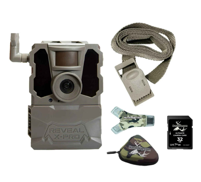 Tactacam REVEAL Pro 3.0 Cellular Trail Camera Kit – Includes Mounting Strap, HuntEmUp Outdoors 32GB SD Card & Multi-Port Card Reader