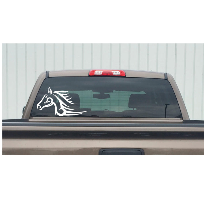 Our Tribal Horse Window Decal - Tribal Horse Window Sticker is Custom Die Cut on our High Speed Vinyl cutters from outdoor grade high performance adhesive vinyl. Available in Several color and size options. Our Tribal Horse Window Decal - Tribal Horse Window Sticker are made to be applied to the outside of your automobile windows, or can be applied to any hard smooth surface. Other customer and horse decals available.