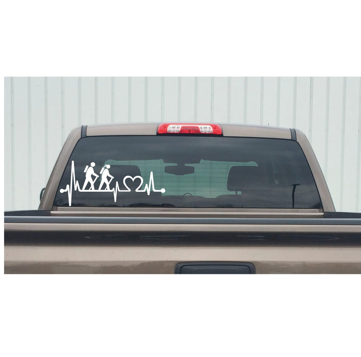 Stylish hiking silhouette decal and love hiking lifeline decal for hikers in love